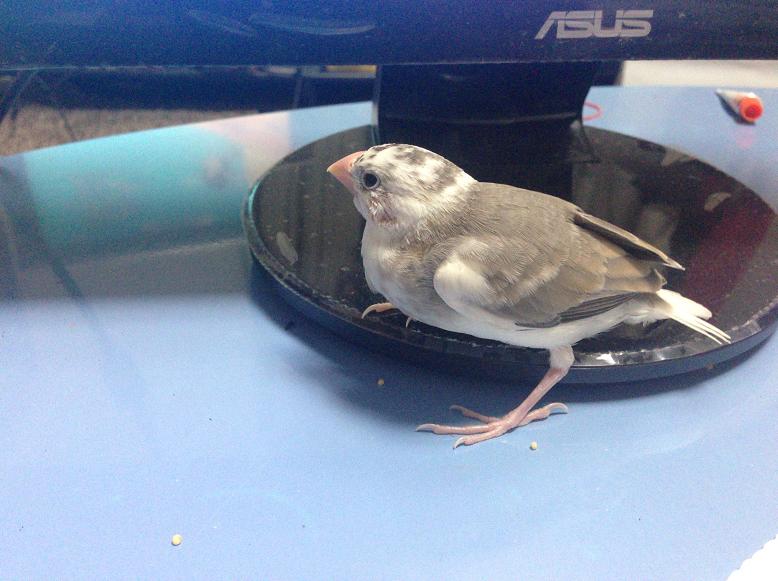 その瞳の先に、君は何を見るのか 文鳥さんの暮らしぶり 2015年11月08日 【飼育8日目/生後推定28日】体重23g 8日目の今日、体重がまた1g増えました! 太ったのか、成長したのか・・・。 まあ、明日にはまた減るかもしれないので、安定するまではなんとも。 ただ、つい4日前に撮影した「挿し餌風景の動画」の時ほど、今はご飯を求めてこないので、飼い主から貰う挿し餌の量は確実に減っています。 ということは、やはり自分で食べているのか? うーん、成長駆け足!! さて、動きが日に日に活発になるので、撮りたい角度での静止画を撮影するのが難しくなってきました。 朝の一枚。成長記録にこれだけは欠かせないので撮らせて頂く 片手に乗せて↑↑のように撮影しようとすると、すぐ飼い主の腕を肩まで高速で駆け寄り、顔に近づいてくるので、なかなか大人しくしていてくれません。 テンさんのために、シャッター音が鳴らないカメラアプリを使い始めたので、iphoneに対する不信感も薄れてきたよう。 テンさん>>>>画質です。 そんな中、昨日の夜、モニターの土台でテンさんが片足を上げてポージングをしていました。 遠い目。まだ見ぬ青春の大冒険に思いを馳せる。まるでその視線の先には大海原が見えるよう。 その凛々しい立ち姿は、波止場の裕次郎さながら (チラッ) こっち見んでいい! そしてこれも。昨日の夜から豆苗を与え始めました。 近所のスーパーで無農薬のものを100円でゲット。 食べはしないものの、突いてもぐもぐ遊んでいます。 食べ物だと認識したご様子 昨日からじわじわ明るい環境の本宅ケージで過ごさせるようにしているので、観察がしやすくなりました。 現在は、本格引越しを前にケージのレイアウトに頭を悩ませています。 [1回]PR