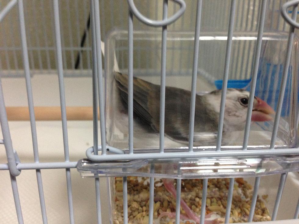 体j・・・、犯人はお前か! 文鳥さんの暮らしぶり 2015年11月16日 【飼育16日目/生後推定36日】体重28g 今日は飼い主が寝坊してしまい、ご飯をあげる時間が遅くなってしまいました。 ごめんよ、テンさん。 とりあえず健康そうなので体重の事はあまり気にならなくなってきました。 今日の朝の一枚は、部屋の様子を伺って背伸びしている所を激写しました。 足をシャンと伸ばしている格好がすごく可愛くて大好きです。 ヒュッとしているテンさん 最近、ケージの中のブランコが何回か落ちたので、掛ける部分がゆるいのかなと思っていたのですが、意図的に落としていた犯人を現行犯逮捕しました。 犯人はカゴの中にいた! そうやって落としていたのね・・・。 目を離した時にブランコの上に乗って遊んでいたみたいです。 上のケージに掛けている部分に執拗に攻撃を仕掛けて落としていました。 危ない・・・、臆病なくせにそういうことするんだから困ったもんだ。 わざとでも遊んでて落ちちゃうのはやはり困るので、ペンチか何かでキツくしてみようと思います。 そしてこれが問題の、ケージ付属の餌入れ。 屈んでもなかなか届かないので、中にすっぽり入ってしまいます。 お尻も上がって窮屈そう・・・、涙ぐましいことです 中に入ってもキツそうなので、水入れに使うのはちょっとやめておこうかな。 バナナ水入れも気に入ってくれているようなので! [1回]PR