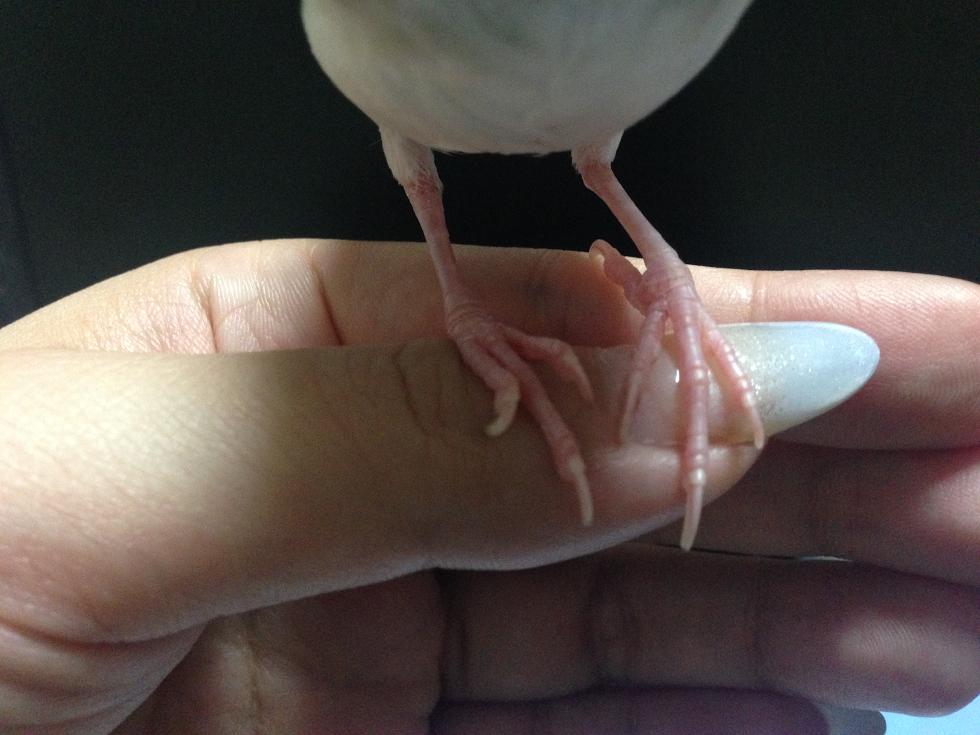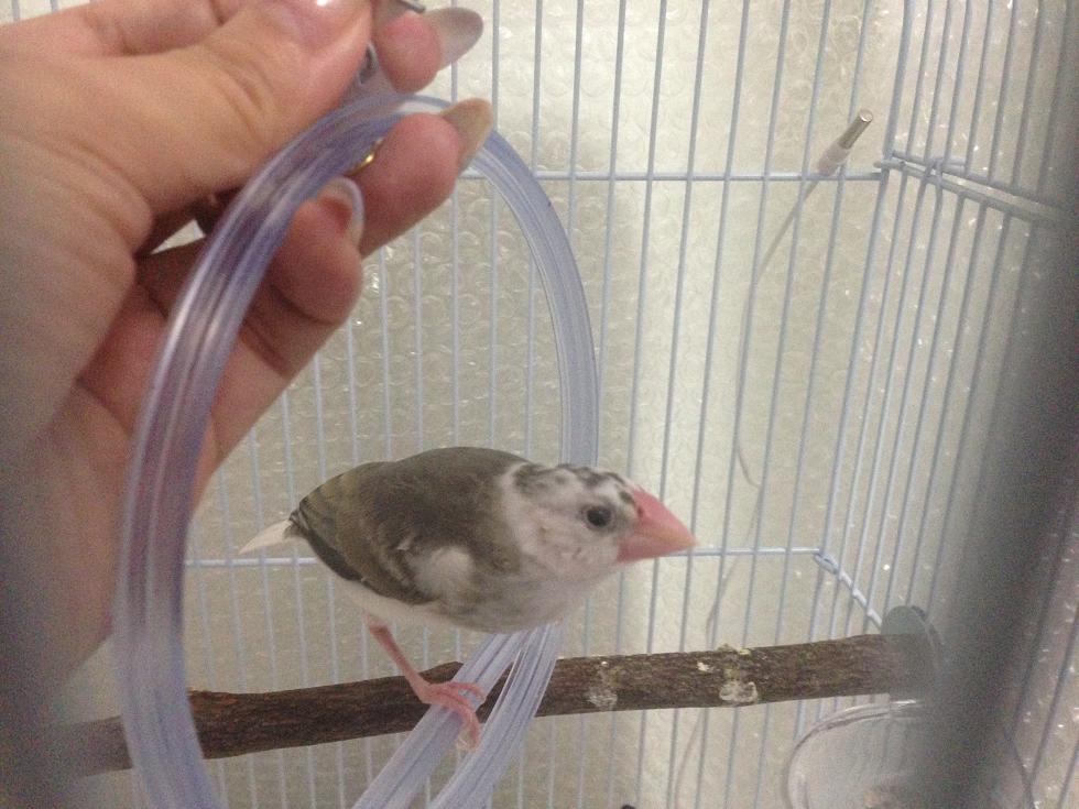 保定ができヌヌヌ・・・ 文鳥さんの暮らしぶり 2015年11月20日 【飼育20日目/生後推定40日】体重28g 実は日がな一日保定の練習をしようとテンさんを捕らえているのですが、やっぱり上手くできません。 あまりしつこくして懲りると困るので、暴れたらすぐ離してしまうのですが、出来れば挿し餌期間中に慣れてもらいたいものです。 と言うのも、爪が長いと感じていて、カーペットやタオルにも引っかかるし、足がもげるのではないかと恐ろしい感じもあるので、可及的速やかに爪切りがしたいのです。 爪切りは自分で出来るにこしたことはないので、出来るようにならなければ・・・。 万が一の為に、お線香は100均で調達済です。 保定はやめておくんなまし と↑↑では書いてみたものの、爪の引っかかりがかなり危険味を帯びてきたため、夕方に動物病院に行って切って頂きました。飼い主も今日明日でいきなり出来るようになるとは思えないので、先生に直にコツも教えてもらいます。 さすがは先生。ぱっと保定し、説明しながらパチパチ切って下さいました。 血が出たところにはカラシ色の薬を塗って頂く。 テンさんも始めての爪切りにしては平然としていて良かったです。 ひとさし指と中指で保定し、残りの指で足を掴む・・・。分かってはいるんですが、もりもり抜けて来ちゃってできないんだよ、先生ー! 先生のやり方を見て、飼い主は首の固定の仕方が甘かったのかなと思いました。 それも分かっていはいるんですが・・・、また爪切りでお世話になる予感がしています。 前回お世話になった時は、水便の時で体重も21gしかない頃でした。現在28g・・・。 大きい!(笑)とのことで、触診して頂きましたが、特に異常はないよう。 筋肉が良く付いてきてるし、寒くなる前にもう少しほっぺたの毛が生え揃うといいですねとのこと。 少し安心しました。 キャリーにも慣れていたからか非常に落ち着いていて、先生に掴まれても驚くことなく、だいぶ肝が据わって来たようで、その点でも安心しました。 そして爪切りが終わっても先生の手から降りない・・・、「人が好きな子ですね」とおっしゃって頂きました。ちょっと嬉しい! 今日から何故か飼い主の頭の上に止まりたがるのですが、いつものように爪がチクチクしないので助かりました。 先端をチョンと切ってもらってスッキリ! さて、ブランコを落とすことに余念がないテンさんですが、掛けなおしている側から乗ってきている様を激写してみました。 落ちないように早く締めましょうという話なのですが、買い物をしていてペンチを買うのをいつも忘れてしまうのです。 落ちたブランコを怖がっていないところを見ると、完全に確信犯のように見えるのですが、果たして。 作業中失礼しますよ、よっこらしょ! まあこんなにブランコ好きになってくれて飼い主としては嬉しい限りです。 また明日から保定の練習をちょっとずつしようと思います。 [3回]PR