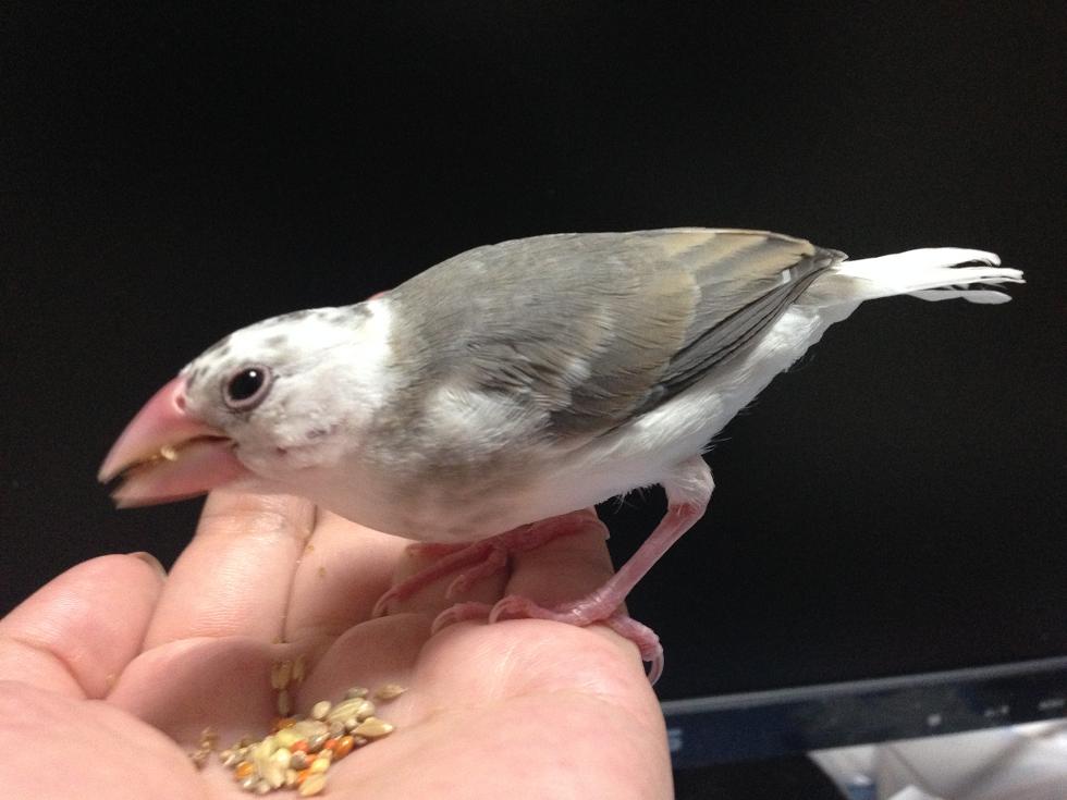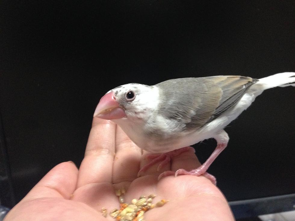 出してもらえず荒ぶる荒ぶる! 文鳥さんの暮らしぶり 2015年11月26日 【飼育26日目/生後推定46日】体重28g 今日からもう挿し餌用の餌を作るのをやめてみました。 なんか楽になりました。実際の親鳥はこのように何匹も育てるのですからすごいなと思います。 体重も今の所変化なし。まあ、粟穂をあれだけ食していれば・・・。 放鳥しても、ビュンビュン飛ぶ訳ではなく飼い主の周辺でウロウロしているだけです。 作らなくなった挿し餌の代わりに、ケージにも入れている大人用餌を上げることにしました。 入っているシードの種類が多すぎて、カナリーシードと青米以外はなにがなんだかよく分からず。 カナリーシードがお気に入りかな? それにしても上手に殻剥きするようになりました。 ものの2~3秒でひと殻剥いてしまいます。 その仕草は、例えが悪いかもしれませんが、さくらんぼの茎を口の中で結ぶ人のような妙な巧みさを感じます。 さて、今日は人間の都合で朝に放鳥することができませんでした。 そのせいなのか、いつもより荒ぶる荒ぶる! ブランコは一度金具を締めたにも関わらず落とすし、何度もケージの正面に向かって文鳥キックを繰り返し、姿が見えなくなったら鳴く。 朝出さなかったので、ちょっと怒っているのかもしれません。 申し訳ないことをしましたが、これからもそんなことがある筈なので、慣れて頂かなければ。 気が済んだのか、三つ指ついて小休憩 ただ、夜に気が付けばクチバシのところにぶつけたような白い傷がありました。 文鳥キックの時にケージにぶつかったのか、ブランコ落としの時に付いたのか。 やんちゃで困ります。 来週から夜まで一人でお留守番できるだろうか。 [2回]PR